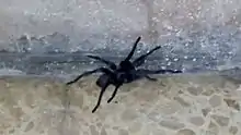The body length is approximately 2.5 cm for adult males and 5 cm or larger for females.[5] It is one of the largest spiders in Israel.[2] The color varies between black, gray and brown dark; they tend to be paler in the cooler more forested regions of their range and darker in the southern more arid areas.[4]