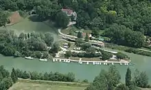 The canal tunnel is located between sluice 14 to Chalifert and sluice 13 to Coupray[3] and has a length of 300 meters.[4] The tunnel is well illuminated and is operated from the Marne.
