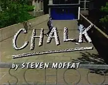 Moffat integrated many references to secondary characters and locations from his previous BAFTA winning show Press Gang into Chalk.[8][19] For instance, the Chalk character Eric Slatt refers to his neighbouring school Norbridge High, run by Mr Sullivan: these were the names of the school and deputy headmaster in Press Gang.[20] The scene where Slatt is being given instructions by wire is taken from the unfilmed Press Gang movie Dead Line.[19] The pornographic video Lesbian Spank Inferno, owned by Dan McGill in the final episode, is later referenced in the Coupling episode "Inferno".[21] In an interview with The New York Times, Moffat admitted that the video is inspired by his then-new partner, Sue Vertue, finding a similar video in their VCR.[22]