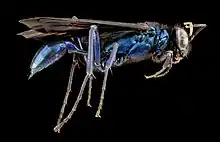 {{cite journal}}: CS1 maint: numeric names: authors list (link) - ↑ "Species Chalybion californicum – Blue Mud Wasp". BugGuide. Department of Entomology, Iowa State University. 10 June 2017. Retrieved 1 July 2017.