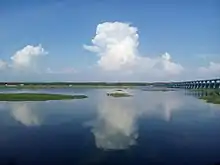 The Chamravattam Regulator-cum-Bridge, also known as Chamravattam Palam or Chamravattam Bridge, Chamravattam RcB, or Chamravattam Project, is built across Bharathapuzha aka Nila near Chamravattam, Triprangode, in Malappuram district. This seems to be the largest of its type in Kerala, India.[1] The bridge has 978 m (3,209 ft) length and 10.5 m (34 ft) width. It connects Ponnani and Tirur. Regulator cum bridge is now just working as a bridge due to faulty design as per the conclusion in the detailed technical investigation report done by the Indian Institute of Technology, Delhi on the directions of the Government of Kerala. There is also a false allegation that sand for construction was taken from river without payment for the same though the sand was paid for by the contractors at prices fixed by the Government of Kerala. This price was based on the prevailing sand prices in the open market and arrived at by the revenue department of Kerala. On account of these false allegations, the contractors for the work are yet to be paid in full for this work though it’s been nearing a decade since the work has been completed and the bridge has been used on a 24/7 basis throughout. [2]