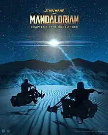Lucasfilm and Disney announced the development of a new live action Star Wars series that would be released for their streaming service Disney+ in November 2017.[1] The series would be focused in the Mandalorians exploring the "scum and villainy" of the Star Wars universe taking place five years the events of the film Return of the Jedi (1983).[2][3] The series would later reveal its official title The Mandalorian alongside the official premise.[4] Lucasfilm president Kathleen Kennedy saw the opportunity of the series to allow a diverse group of writers and directors to create their own Star Wars stories.[5] In March 2018, John Favreau was hired by Lucasfilm to be the head writer of the series,[5] while Dave Filoni was announced to direct two episodes for the series by October,[6] who also serves as the writer of the episode.[7] Favreau and Filoni executive produce the series, alongside Kennedy and Colin Wilson.[8] The first season's fifth episode titled "Chapter 5: The Gunslinger",[9] was released on Disney+ on December 6, 2019.[10]