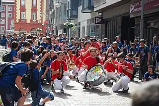 A Charanga is a small amateur marching band with wind and percussion instruments that plays festivals mainly in Northern Spain, Castilla-La Mancha, Castilla y León and the Valencian Community. In the past, the name charanga also applied to certain military musical bands of the Spanish Army[1][2] and as ship's company bands in the Spanish Navy.