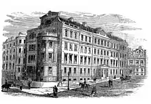 It was founded in 1818, as part of the Charing Cross Hospital, by Dr Benjamin Golding, to meet the needs of the poor who flocked to the cities in search of work in the new factories.[1] This was a revolutionary notion at a time when London doctors mainly practised privately. The hospital was well patronised, and soon had to move to larger premises in Agar Street (near Villiers Street, off the Strand), where it first became known as Charing Cross in 1834.