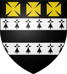Sable two bars ermine, in chief three cross-patée Or.