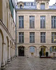 On 18 July 1642, he concluded an estimate and masonry contract for the construction of a double main building and wing in return on a square "rue du Coulombier" (rue du Colombier), belonging to Marie Ferrant, in return for 19,800 livres.[3][4][5]