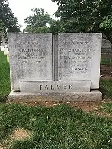 Palmer died in Washington, D.C., on June 7, 1999, at the age of 97 of cardiac arrest in his home in Knollwood, a military retirement community.[1] He was survived by Eugenia Kingman Palmer, whom he married in 1954, and a son. He was buried in Arlington National Cemetery, next to his brother and wife Eugenia K.[3]