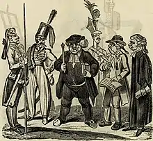 Political caricature from 1819, the central figure with the staff intended as Charles Ethelston