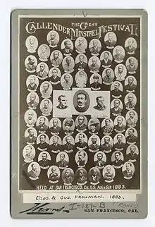 Frohman (center, right) as co-proprietor of the Callender Minstrels, 1883