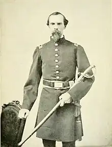 Following the First Battle of Bull Run in July 1861, Loring joined the United States Volunteers and received an appointment to the staff of General Ambrose Burnside at the rank of first lieutenant.[1]:4 In February 1862, Loring was promoted to captain and was assistant quartermaster on Burnside's staff.[1]:4 In July 1862, Burnside's command was reorganized as the Ninth Army Corps, with Loring as one of seven staff officers.[1]:4 Loring remained with the Ninth through the end of the war.[1]:4 He held the rank of lieutenant colonel by the Battle of the Crater on July 30, 1864, and on August 1 received brevets to colonel and brigadier general, highlighting his "gallant and meritorious services" at the Siege of Knoxville, Battle of the Wilderness, Battle of Spotsylvania, and Battle of Bethesda Church.[1]:5 After the Surrender of Lee in April 1865, Loring received his third and final brevet, to major general in July,[4] highlighting his overall services during the war; he left the army the following month.[1]:5–6