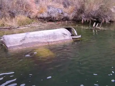 In 1910, Charles H. Spencer was a prospector who arrived at Lee's Ferry in search of gold hidden in shale of the Chinle Formation. His company, American Placer Corporation, processed the shale by creating a mud and then removing the gold deposits by mercury amalgamation, which required a steady source of power. Finding a coal seam up river, Spencer commissioned a San Francisco company, Robertson–Schultz Co., to build the stern-wheel paddle steamer, Charles H. Spencer, for the American Placer Corporation. James Robertson and Herman Rosenfelt built the ship.[2] It was 92.5 feet long, 25 feet abeam and had a draft of 18 to 20 inches.[3]:129 A 110 horse-power marine boiler powered a 12-foot stern paddle. The various parts were manufactured in San Francisco, shipped by rail to Marysvale, Utah, and conveyed by ox-cart to the mouth of Warm Creek, where the boat was assembled. The boat averaged 5–6 tons of coal on each trip. But by the end of the summer the operation was curtailed. The boat was docked and then abandoned in 1914. During a flood in 1921, the boat sank in shallow water. Later the superstructure was stripped of its lumber.[2] Its boiler remains in the river marking the site of its sinking and a historical marker is located above it on the bank, about 1/4 mile east of the end of Lees ferry road.[4]