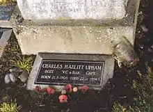 He died in Canterbury on 22 November 1994, surrounded by his wife and daughters. His funeral in the Christchurch Cathedral was conducted with full military honours. The streets of Christchurch were lined by over 5,000 people.[19] Upham is buried in the graveyard of St Paul's Church Papanui.[20] His death was also marked by a memorial service on 5 May 1995 in London's St Martin-in-the-Fields Church, attended by representatives for the Royal Family; senior New Zealand government and political figures; senior members of the British and New Zealand armed forces; Valerian Freyberg, 3rd Baron Freyberg, grandson of VC holder Lord Freyberg, the commander of Allied forces in Crete and 7th Governor-General of New Zealand; representatives of veterans' organisations; and other VC and George Cross holders.[21]