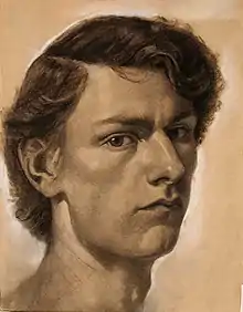 Being a student at the ISA allowed C.J. Fiscus to hone his skills as an artist and as an exhibitor. After holding two successful three-week public exhibits of faculty and student work, a bigger, bolder exhibit that included works by artists from around the world was planned for the ISA.[8] On May 7, 1878, the newly formed Indiana Art Association (IAA), under the direction of the ISA, opened its First Quarterly Exhibition at the school. Fiscus displayed eight crayon drawings at the show: #247: "Apollo Belvidere" (bust), #248: "Farnese Hercules", #249: "Apollo Belvidere" (Figure), #250: "An Arm", #251: "Study from Life", #252: "Study from Life", #253: "William" (A Life Study), #254: "A Composition", alongside the works of accomplished artists such as Jacob Cox (1810-1892), Otto Sommer (1811-1911), Alfred Thompson Bricher (1837-1908), William Forsyth, and another future one-fifth of the Hoosier Group, Theodore Clement (T.C.) Steele (1847-1926).[9]