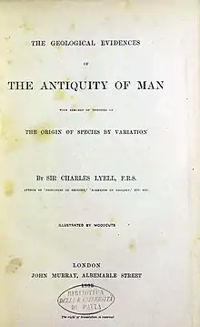 Geological Evidences of the Antiquity of Man at wikisource. - 1 2 "Review of Life, Letters, and Journals by Sir Charles Lyell, Bart. ed. by his Sister-in-Law, Mrs. Lyell". The Quarterly Review. 153: 96–131. January 1882.