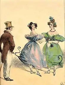 The purpose of this "library for fun " is to distract and entertain through the creation of " social types " representative, the physiologies, very popular with the public.[22] The most emblematic kinds were illustrated in particular by Daumier (Ratapoil, Robert Macaire) Travies (M.Mayeux), Henry Monnier (Joseph Prudhomme) Gavarni (Thomas Vireloque) . Vogue physiologies was conducive to Aubert House: February 1841 to August 1842, she published thirty-two different physiologies representing three quarters of production in this period.[23]