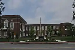 The Charles R. Wilber School (also formerly Sharon High School) is a historic school building at 75-85 South Main Street in Sharon, Massachusetts. Located on a block facing Sharon Town Hall, the large two story brick Colonial and Classical Revival building was built in 1921-22 and enlarged in 1928–29. The older portion of the building, now the south building, was constructed to serve as an elementary school, and was named the Charles R. Wilber School. The 1928 enlargement, including the north wing and the shaft of the T-shaped structure, were done to convert the building to a high school. The building served as Sharon's high school until 1957, after which it became an intermediate school. In 2009 a new wing was added to the building, and it was converted to residential use.[2]