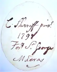 In addition to painting portrait miniatures, Shirreff also produced pastels in his early years.[1] Shirreff successfully exhibited oil paintings, pastels, and pencil drawings at the Royal Academy of Arts in 1771, and at the Free Society of Artists from 1770 until 1773.[3][4]