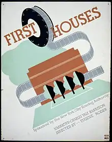 Poster for the WPA film First Houses (1936) for the New York City Housing Authority, with narrative by Charles Yale Harrison