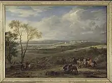 However, the treaty allowed France to retain strategic areas along their border with the Spanish Netherlands, including Charleroi whose fortifications were upgraded by Vauban. Now fully rehabilitated, Montal was appointed Governor, a position he retained until 1678; during the Franco-Dutch War in June 1673, he took part in the assault on the key Dutch town of Maastricht.[12] Later the same year he repulsed an attempt by William of Orange to take Charleroi and was wounded at Seneffe in 1674. During the winter of 1676/1677, he supported a tight French blockade of the Spanish-held towns of Valenciennes and Cambrai by seizing any grain being transported from Namur and preventing reinforcements reaching either garrison.[13]
