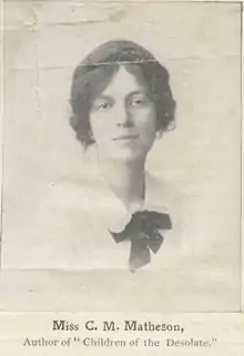 She appears in A & C Black's Who's Who from 1919 to 1934. The listing in the 1919 edition reads: "MATHESON, C. M.; b. near Liskeard ; unmarried. Took up work on the land as war work, 1915; trained at Sparsholt, Winchester; Member of Women's National Land Service Corps; employed first on Wiltshire Dairy Farm, then by the Prince of Wales in Cornwall (as herdswoman); very enthusiastic with regard to training and stock rearing. Publications: The Generation Between, 1915; Children of the Desolate, 1916; The Silver Cord, 1919. Address: The Lodge, Princetown, Devon."[22][23]