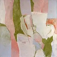 In 1949, Park began teaching at Leonard School for Girls; she later became an instructor at the Dalton School. Between 1955 and 1957, she taught at the People's Art Center of the Museum of Modern Art.[1][7]:6[note 4][note 5] In 1952, she participated in a group show at the Peridot Gallery; the following year she had a painting in the Annual Exhibition of Contemporary American Painting at the Whitney Museum of American Art.[7]:6[15][note 6] In 1954, she participated in a group show at the Guild Hall in East Hampton.[18] The Tanager Gallery in Manhattan presented her first solo show in 1957.[19] Park showed often during the later 1950s, particularly in group exhibitions at Eleanor Ward's Stable Gallery.[3][note 7]