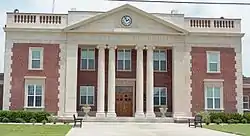 The Charlton County Courthouse is located in Folkston, Georgia. It is in the Neoclassical style and was constructed in 1928 out of brick, stone, and concrete. The construction cost was $46,000 and the clock cost and additional $3,000. The total cost of the project was $54,000. It is the fourth courthouse built for this county and is built on the site of the previous courthouse, which was built in 1902 and burned in 1928.[2]