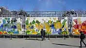 From February 1 through February 29, 2008, Millennium Park hosted a winter celebration called the Museum of Modern Ice.[10] This event featured an exhibition located on the Central Promenade by artist Gordon Halloran entitled Paintings Below Zero.[11][12] The exhibition's centerpiece was an abstract artwork on the surface of four ice panels that measured 95 by 12 feet (29.0 by 3.7 m).[11] In addition to the ice wall painting, Halloran painted the surface of the McCormick Tribune Ice Rink.[13]