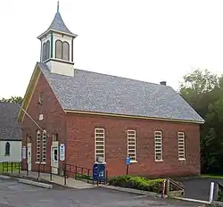 The former Chelsea Grammar School is located on Liberty Street. The first public schoolhouse in the Town of Wappinger, it taught children up until high school.[10] It is an intact one-room schoolhouse from the late 19th century, when the hamlet was a thriving Hudson River port. In 1987 it was added to the National Register of Historic Places. Its use as a school ended in the mid-20th century when the smaller local school districts of the area were consolidated into the Wappinger Central School District. Since then, the local fire department has used half of it as a community center, and the United States Postal Service has leased the other half for use as the local post office, serving the 12512 ZIP Code.
