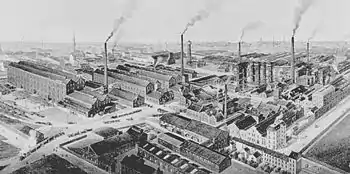 In 1860, Grüneberg finished his doctoral studies and received a Ph.D. from the University of Leipzig.[8] His research was in the field of agricultural chemistry, in particular mineral fertilizers.[9] In 1864, the factory began the production of the fertilizer superphosphate, produced from phosphorite from a newly acquired mine in Nassau an der Lahn. One year later the production of the fertilizer ammonium sulfate begins. In 1866, the factory begins to use the Leblanc process to produce potassium carbonate from sodium chloride.[8] During the Centennial Exposition in Philadelphia in 1876, the company was awarded a gold medal for having first manufactured Potash and Potash salts, according to Leblanc's process, on a manufacturing scale , and for the purity of the products exhibited.[10]