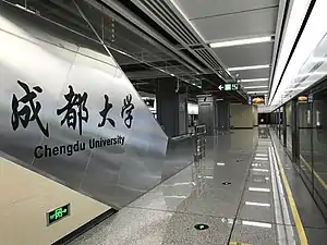 Chengdu University (Chinese: 成都大学) is a station on Line 4 of the Chengdu Metro in China.[1][2] The station serves the nearby Chengdu University.