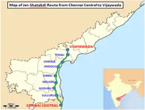 2. "12077/Chennai Central - Vijayawada Jan Shatabdi Express - Chennai/MAS to Vijayawada/BZA". India Rail Info. Retrieved 15 January 2016.