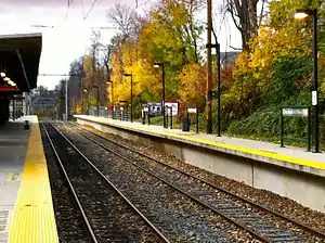 Chestnut Hill West station is a SEPTA Regional Rail station in Philadelphia, Pennsylvania. Located at 9 West Evergreen Avenue in the Chestnut Hill neighborhood, it serves the Chestnut Hill West Line. It was originally built by the Philadelphia, Germantown and Chestnut Hill Railroad between 1883 and 1884, and later acquired by the Pennsylvania Railroad. In 1918, when the line was electrified, the station was rebuilt to accommodate the upgrade.[4]