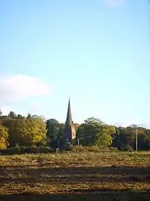 The parish church, dedicated to St. Michael and All Angels, was built in 1865 to the designs of Benjamin Ferrey[2] and contains a fine East window depicting "Christ adored by the hosts of Heaven", designed by John Hardman in 1881. The chancel windows, one of which is a war memorial to parish dead of World War I and designed by Dunstan Powell,[3] are also by Hardman, while the windows in the nave were designed by Francis Skeat in 1963.[4]