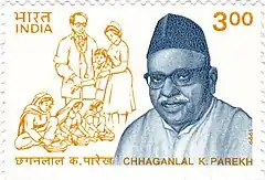 Chhaganlal Karamshi Parekh popularly known as Chhagan Bapa (27 June 1894 – 14 December 1968) was an Indian philanthropist and social worker who worked for education, the end of poverty, and social reform of women.[1]