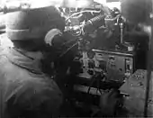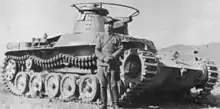 The Type 97's low silhouette and semicircular radio antenna on the turret distinguished the tank from its contemporaries. After 1941, the tank was less effective than most Allied tank designs.[8] In 1942, a new version of the Chi-Ha was produced with a larger three-man turret, and a high-velocity Type 1 47 mm tank gun. It was designated the Type 97-Kai ("improved") or Type 97 Shinhōtō Chi-Ha (Japanese: 新砲塔チハ; "New turret Chi-Ha").[5]