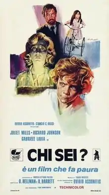 Beyond the Door (Italian: Chi sei?, lit. "Who are you?") is a 1974[3] supernatural horror film directed by Ovidio G. Assonitis and Roberto Piazzoli, and starring Juliet Mills, Gabriele Lavia, and Richard Johnson. The plot follows a San Francisco housewife who becomes demonically possessed in the midst of a pregnancy. The film was a co-production between the United States and Italy. It was released in the United Kingdom in an extended cut under the title Devil Within Her.