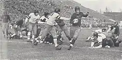 - ↑ Edward Burns (October 14, 1934). "Maroons' Backs Long Runs, Pass Rout Michigan". Chicago Daily Tribune. p. A1. Archived from the original on October 16, 2016. Retrieved July 5, 2017.