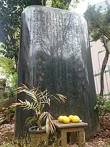 Chieko's memorial monument "Lemon elegy cenotaph" at her death place in Shinagawa, Tokyo