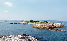 In 1955, Children's Island was leased by the Marblehead YMCA which opened a summer camp. The following year the YMCA purchased the island with money contributed by four YMCA directors. A new pier was constructed, and two foundations converted into swimming pools. In the 1960s, the sailors and arts and crafts building were constructed. In June 1971, 60 Army Reserve engineers completed a $40,000 repair project filling in open holes, stabilizing the swimming pool, and repaired retention walls.[43] The island sustained heavy damage in the blizzard of 1978, the repair of which required the YMCA to take out a loan.[44] Children are picked up from a dock on State Street in Marblehead (and more recently Pickering Wharf in Salem) and are returned at the end of the day. Activities at camp have included sailing, archery, swimming, riflery (formerly), nature, arts & crafts, fishing, and one or more overnights a session. A "Rangers" Program modeled after the Boy Scouts was created in the 1960s by Peter Sawin and has always been extremely popular. During the "Perfect Storm" of 1991, the island sustained significant damage, and the pier was nearly destroyed. It was moved from its central position on the island to a location on the southwest side. However, this was more open to the wind and waves and was moved back to the original location a few years later. In the 1990s, multiple new buildings were constructed including the Ranger's Lodge, Gazebo, and a combination office and infirmary. Although known as Children's Island since the days of the sanitarium in the early 1900s, its name was officially changed from Cat Island to Children's Island by petition of the Marblehead/Swampscott YMCA in 1996.