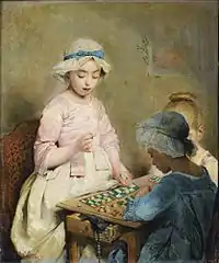 The game, marred with all sorts of incidents, but full of excitement, attract even the oldest brother, Vasya, a teenage gymnasium student, even if a suspicious servant refuses to break his ruble into kopecks. Sonya agrees to lend him one, but then Grisha accidentally drops his coin. After an eventful and, in the long run, successful search, the children return to the table where they find Sonya fast asleep. Altogether, they carry her to their mother's bed... There and then they all fall victim to fatigue. In five minutes' time, all five are upon it, bundled up in a heap, sound asleep, their coins scattered around, "having lost their value, up until the next game."