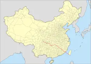 China National Highway 319 (G319) runs northwest from Xiamen, Fujian towards Jiangxi Province, Hunan Province, Chongqing, and ends in Chengdu, Sichuan. It is 2984 kilometres in length.