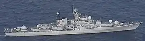 • Radar: Air target acquisition radar, 3 × navigation radars, 130 mm gun fire-control radars, 30 mm air-defence gun fire control radar