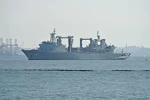 Type 903 integrated supply ship (NATO called Fuchi-class supply ship) is a new large-scale integrated supply ship of the Chinese People's Liberation Army Navy, designed by Zhang Wende. The later improved model is called 903A. The difference with 903 is that the displacement has increased from 20,530 tons to 23,000 tons.[1]