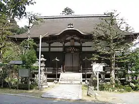 One of the first such efforts was made during the Nara period (710–794) with the founding of so-called shrine-temples (jingū-ji), complexes consisting of a shrine dedicated to some kami and of a Buddhist temple.[8][9] This syncretic solution is believed to have its roots in the Chinese qié-lán-shen (garanjin (伽藍神, lit. kami of the garan) in Japanese), tutelary gods of Chinese temples.[2]