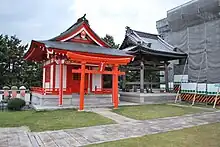 In Japan, a chinjusha (鎮守社•鎮社, or tutelary shrine) is a Shinto shrine which enshrines a tutelary kami (鎮守神, chinjugami); that is, a patron spirit that protects a given area, village, building or a Buddhist temple.[1][2][3] The Imperial Palace has its own tutelary shrine dedicated to the 21 guardian gods of Ise Shrine. Tutelary shrines are usually very small, but there is a range in size, and the great Hiyoshi Taisha for example is Enryaku-ji's tutelary shrine.[4] The tutelary shrine of a temple or the complex the two together form are sometimes called a temple-shrine (寺社, jisha).[5][6] If a tutelary shrine is called chinju-dō, it is the tutelary shrine of a Buddhist temple.[3] Even in that case, however, the shrine retains its distinctive architecture.