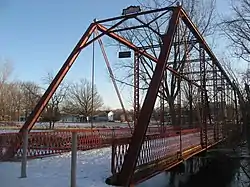 ![]() Northern portal and western (downstream) side of the Chinworth Bridge, which spans the Tippecanoe River west of Warsaw in Harrison and Wayne Townships of Kosciusko County, Indiana, United States. | |