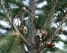 Significant damage is also caused to subalpine fir.[26] Red spruce, in its limited distribution, and tamarack are also attacked.[27]