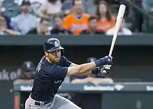 The Mariners invited Taylor to spring training in 2014.[7][8] Following spring training, he was assigned to the Tacoma Rainiers of the Class AAA Pacific Coast League (PCL). He appeared in the Triple-A All-Star Game, and was named the PCL's Top Star.[9] After batting .328 with five home runs, 37 RBIs, and 63 runs scored in 75 games while playing shortstop and second base,[10] the Mariners promoted Taylor to the major leagues on July 24 to replace the injured Willie Bloomquist.[11] He collected his first major-league hit, a single, on the same day against the Baltimore Orioles' Wei-Yin Chen.[12] In 47 games, he hit .287.[13]