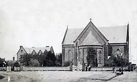 In 1868 a site on Jeffcott Street opposite the church was purchased for a schoolroom.[2] The foundation stone was laid on 26 September.