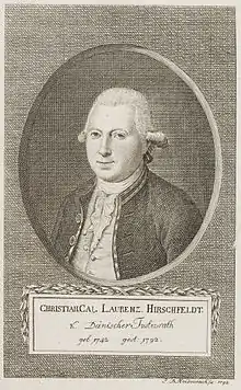 Christian Cay Lorenz Hirschfeld (16 February 1742 – 20 February 1792) was a German Enlightenment gardening theorist, academic in philosophy and art history in the service of Denmark and a writer, notable for several books. He advocated for sensitive Romantic gardens in the English landscape style.